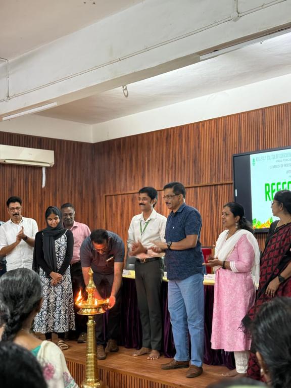 The Department of Processing and Food Engineering, in collaboration with AICRP on PHET, organized a two-day programme titled “ReFoodure: Reimagining Food for Future” on October 15–16, 2025, to mark World Food Day. The event, aligned with the global theme “Hand in Hand for Better Food and a Better Future,” was inaugurated by the Dean, Faculty of Agricultural Engineering. Dr. Deepak Mathew, Professor (Cattle Breeding), KVASU, and other dignitaries graced the occasion. A special talk by Dr. Swathy V., M.D. (Ayurveda) on “Healthy Diet, Healthy Living” drew great appreciation. The celebration featured engaging student events such as quiz, poster making, food vlogging, photography, and sustainable cooking competitions, showcasing creativity and enthusiasm.